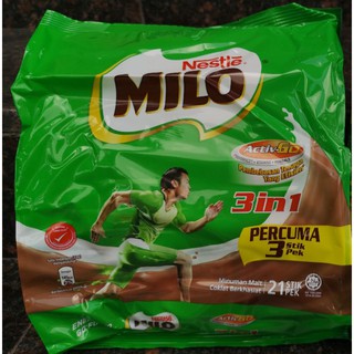 Be the first to review nestle milo 3in1 chocolate powder 27g (18sachets) cancel reply. Milo 3 in 1 are pre packaged sachets with milo, creamer/milk powder and sugar and all you need to do is add hot water (or add hot water/cold water and ice if you want it cold). Jual milo 3 in 1 18 + 3 sticks made in malaysia original ( import). Minuman susu milo import dari malaysia dengan protomalt, vitamin dan mineral di dalamnya. 1 nations chocolate malt 400gm.